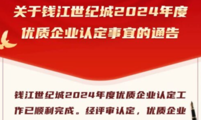 喜訊!杭州恒領科技有限公司獲評錢江世紀城 2024 年度優(yōu)質企業(yè)